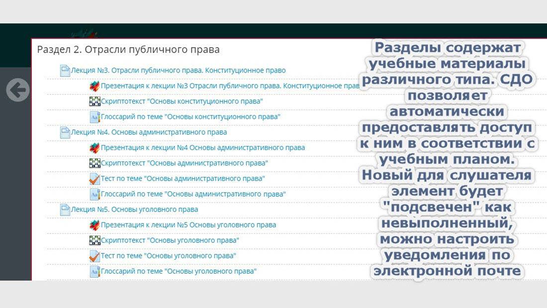 размещение материалов, настройку и запуск электронного курса;