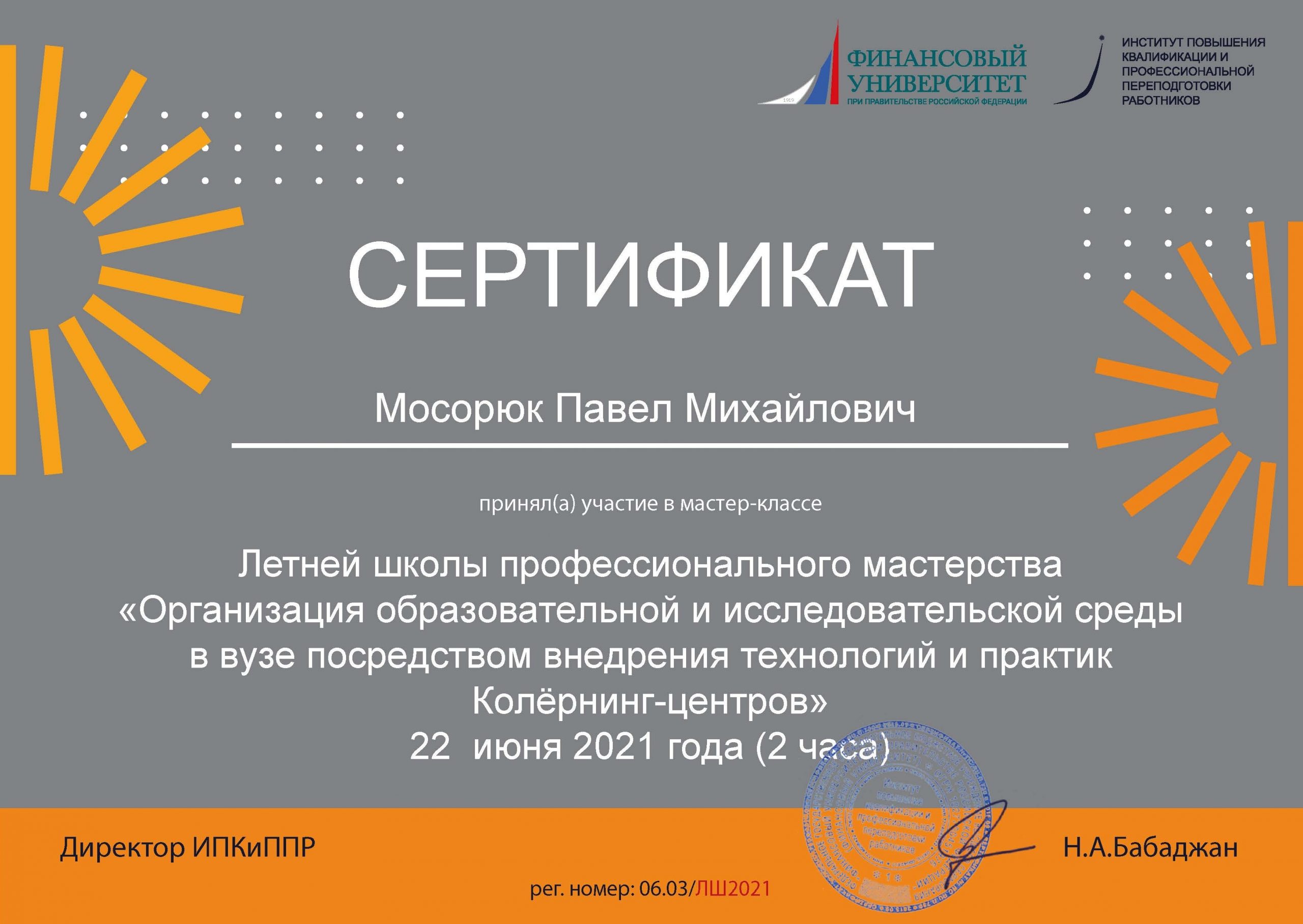 В 2021 году, в должности директора Центра цифровых образовательных технологий ИПКиППР Финуниверситета при Правительстве Российской Федерации, я курировал полный цикл цифрового образовательного продукта: